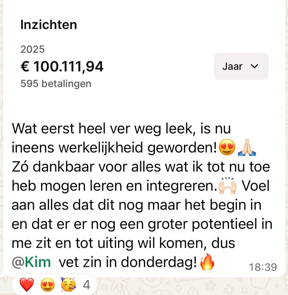 - Én toegang tot mijn coaching via WhatsApp (heel kort lijntje met mij)